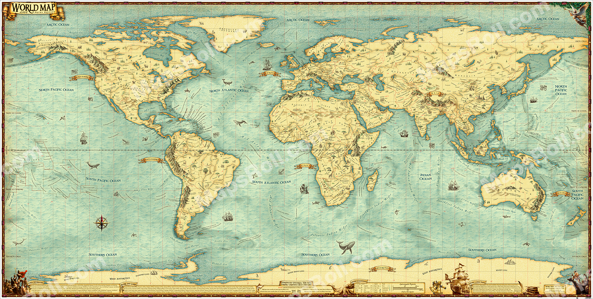World map in English language, released in 2009 by Unique Media...